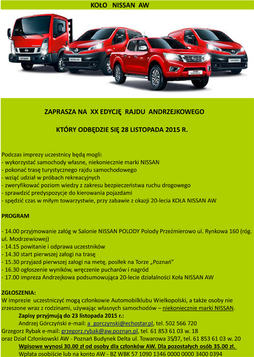 Rajd ANDRZEJkowy Koła NISSAN AW to już 20-letnia tradycja.
