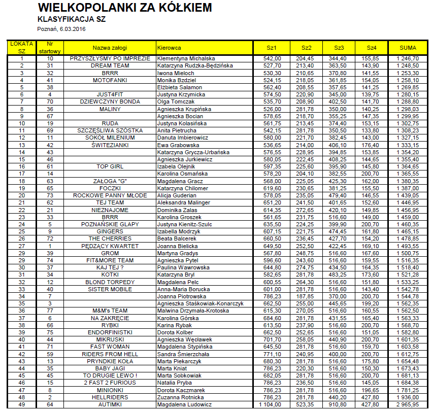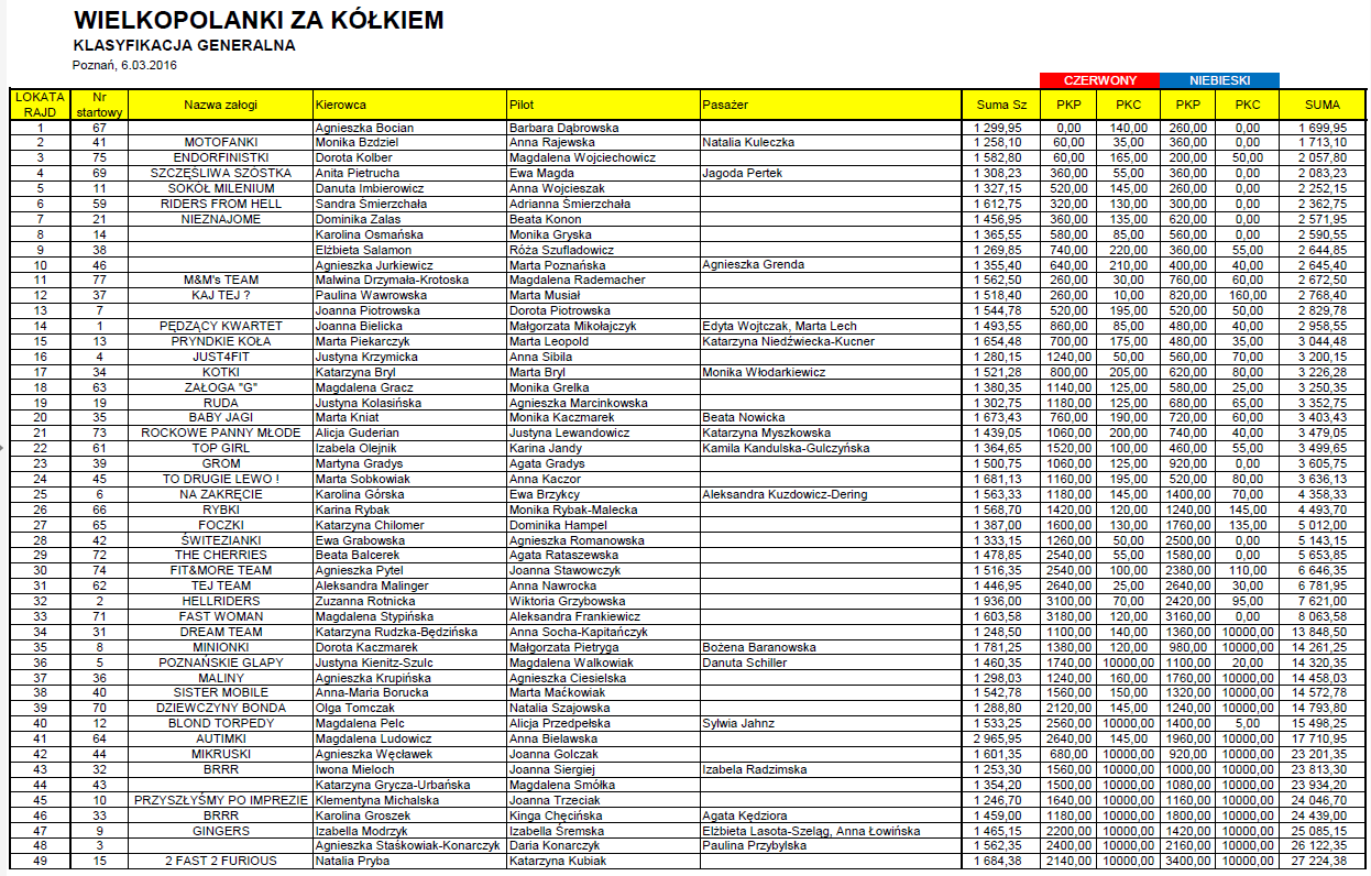 klasyfikacji rajdowej zwyciężyła Klementyna Michalska (imię